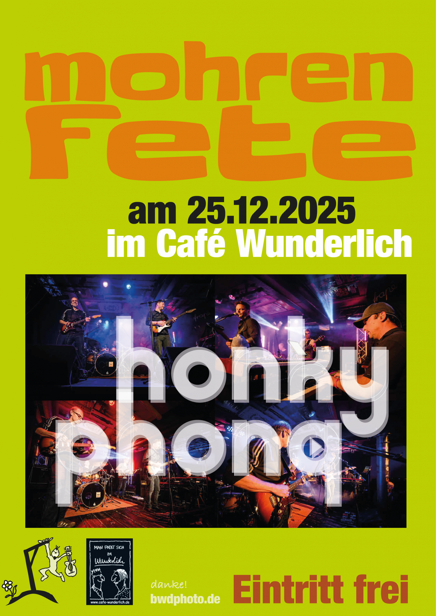 Die „Mohren-Fete“ mit Honky Phonq findet dieses Jahr wieder am 25.12. im Wunderlich statt.
